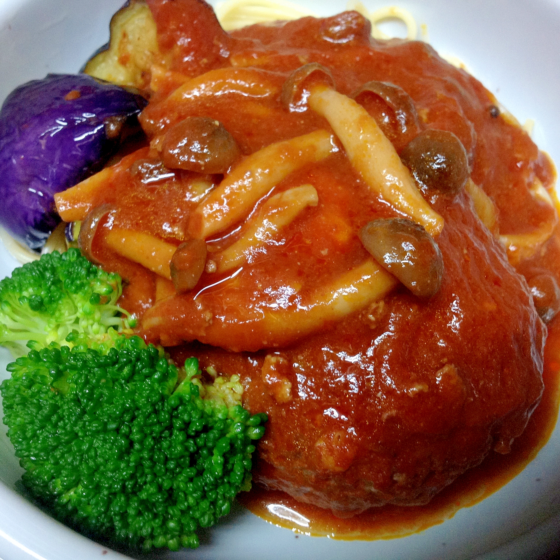 旨みと甘みが染み込むトマトとキノコの煮込みハンバーグのレシピ 健康レシピと献立のソラレピ